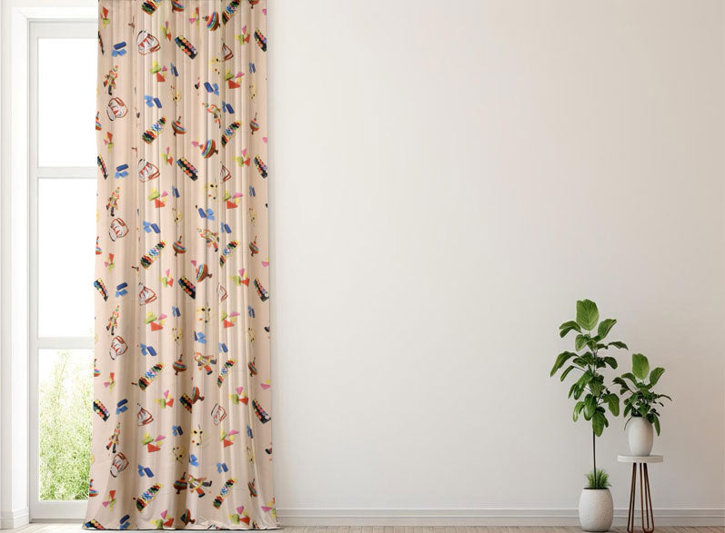 Bambini Digital Print Curtains on Polyester fabric of Musical Instruments on Light Yellow Base