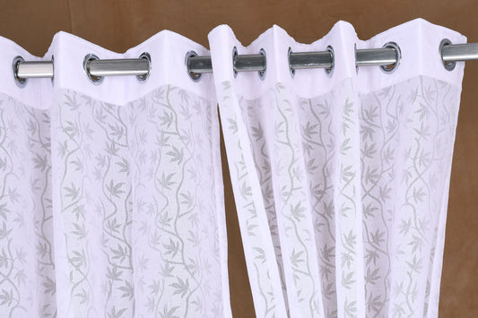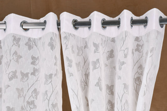 Mero Collection Curtains with Eyelet patttern in Sheer fabric with self textures in Pearl White Colour Leafy