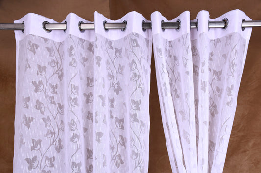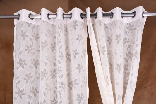 Mero Collection Curtains with Eyelet patttern in Sheer fabric with self textures in Cream Off-White Colour Floral Brasso