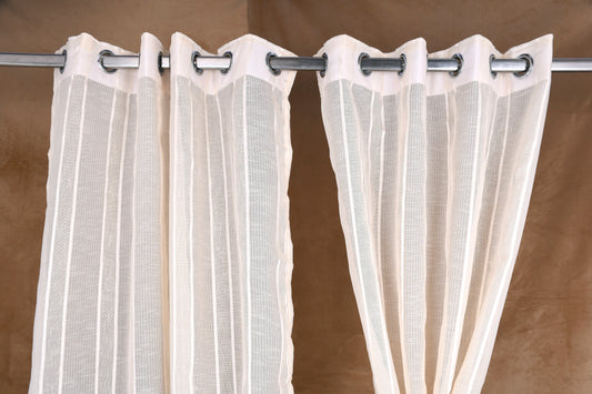 Mero Collection Curtains with Eyelet patttern in Sheer fabric with self textures in OffWhite Colour Thin Broken Stripe Design