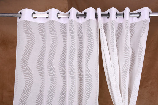 Mero Collection Curtains with Eyelet patttern in Sheer fabric with self textures in Pearl White Colour Stripe Leaf Brasso
