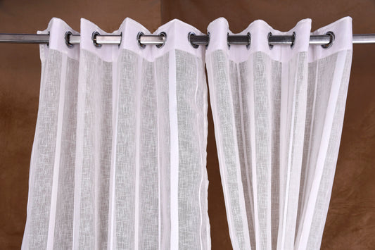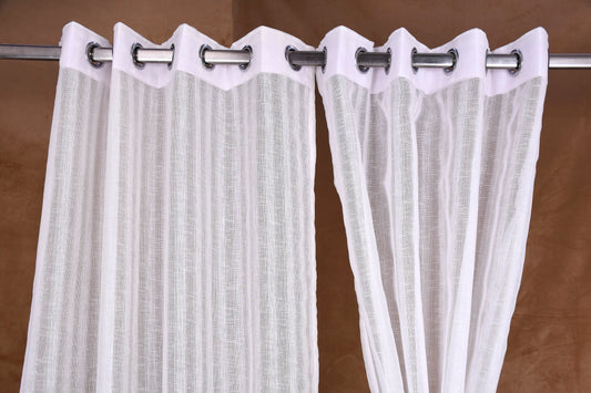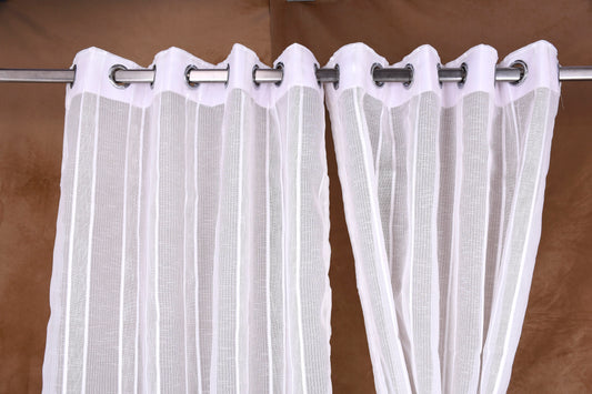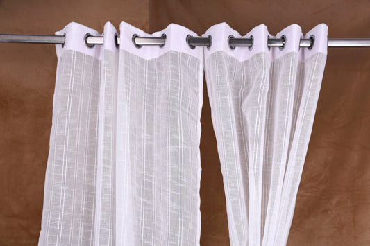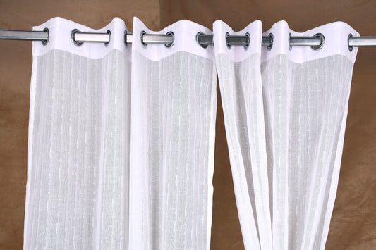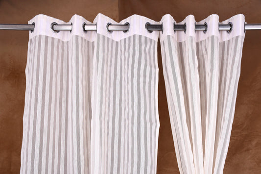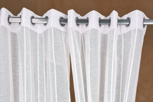 Mero Collection Curtains with Eyelet patttern in Sheer fabric with self textures in Pearl White Colour Stripe Thin