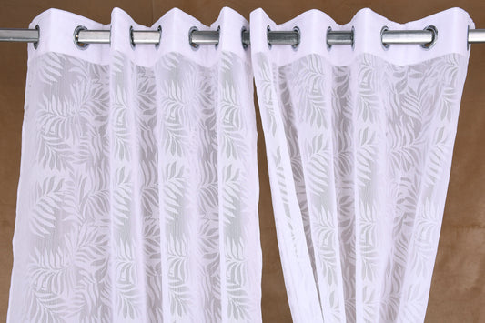 Mero Collection Curtains with Eyelet patttern in Sheer fabric with self textures in OffWhite Leafy Overall Brasso