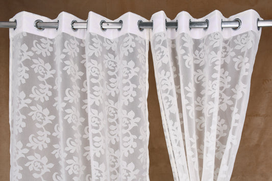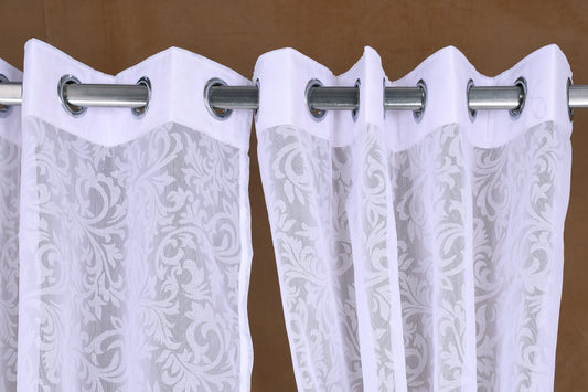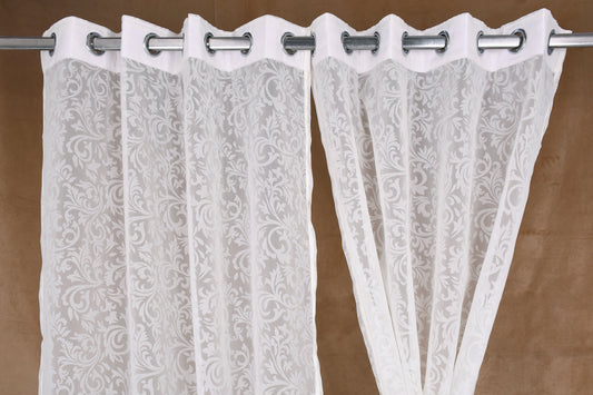 Mero Collection Curtains with Eyelet patttern in Sheer fabric with self textures in Pearl White Colour Scroll Brasso