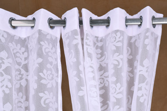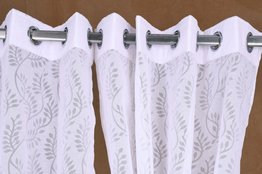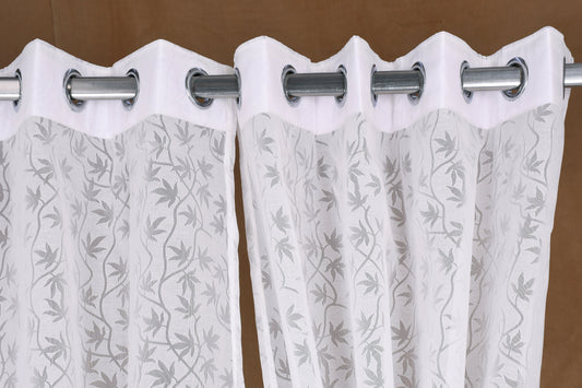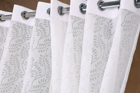 Mero Collection Curtains with Eyelet patttern in Sheer fabric with self textures in Cream Off-White Colour Leafy