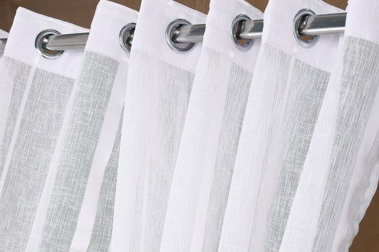 Mero Collection Curtains with Eyelet patttern in Sheer fabric with self textures in Pearl White Colour Stripe