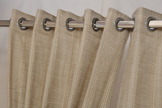 Ricamo Collection Curtains in Eyelet patttern with Stripe Embroidered Work Design in Buff Colour.