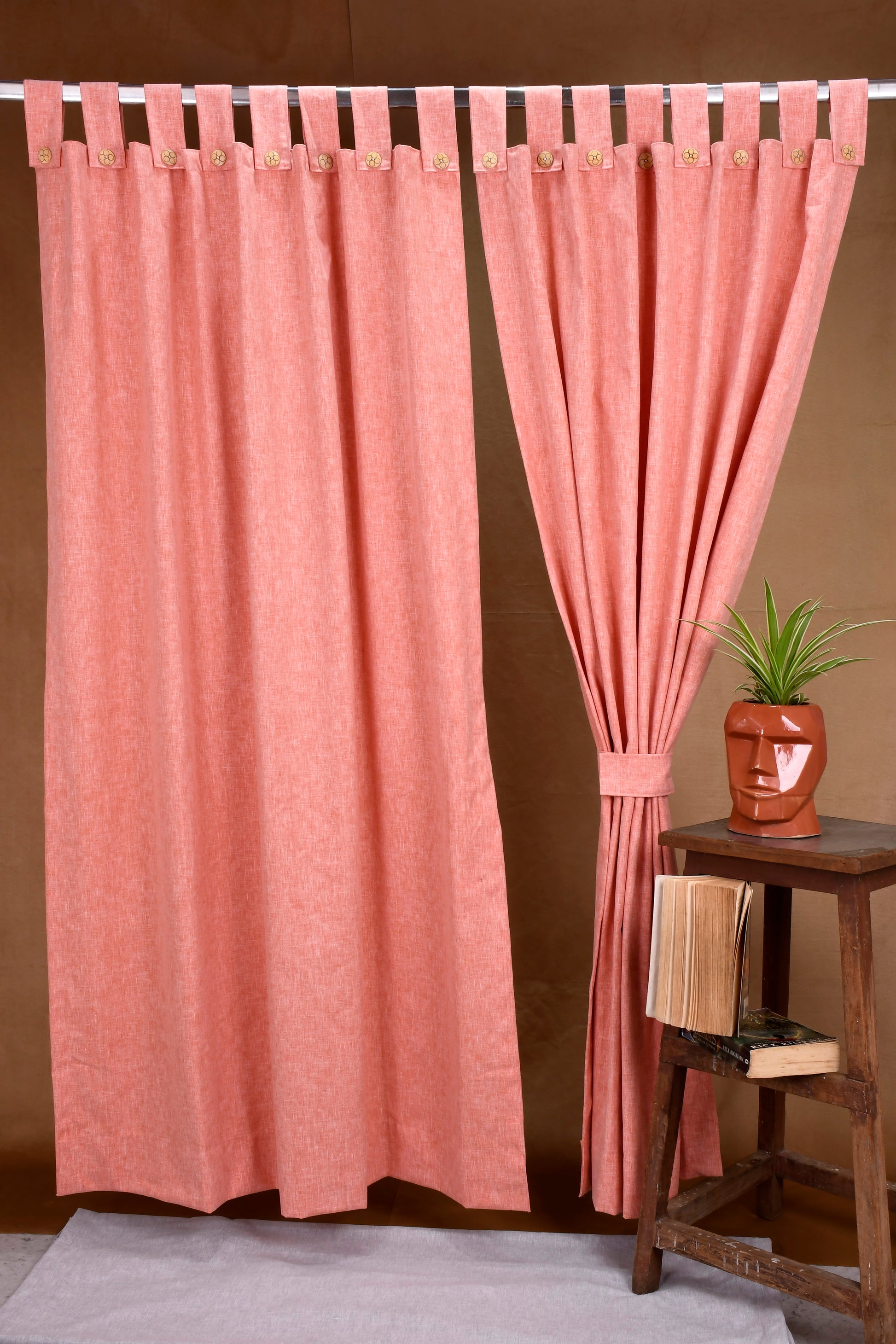 Puro Collection Curtains in Loop pattern PolyCotton fabric with minimal Textures in Khakhi Red Colour.